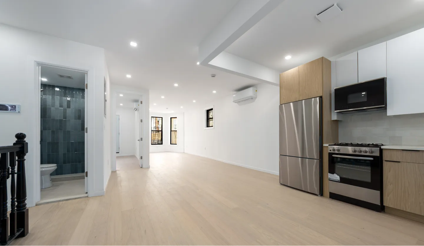 A brand-new boutique stone building on a tree-lined block in Bedford-Stuyvesant, featuring oversized one- and two-bedroom residences and a three-bedroom duplex. Homes offer hardwood floors, rare skylights, modern kitchens, in-unit washer and dryer, and split-unit heating and air conditioning—blending classic Brooklyn charm with contemporary design.